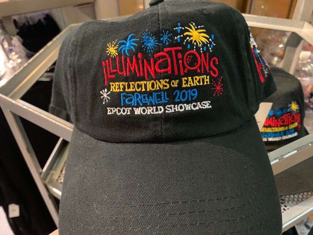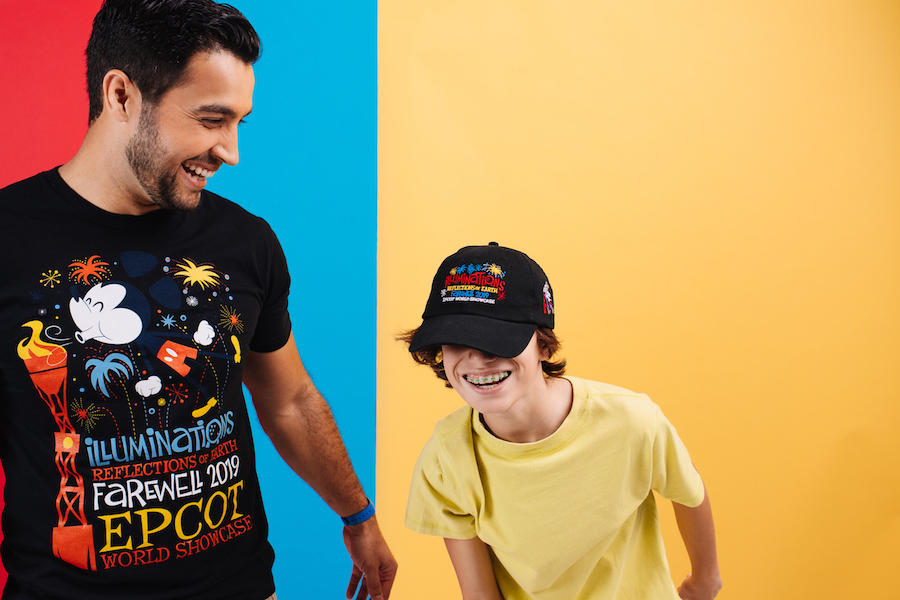 - The “IllumiNations: Reflections of Earth” “farewell” T-shirt featuring Mickey Mouse and matching cap will be available at select merchandise locations at Epcot next week.
