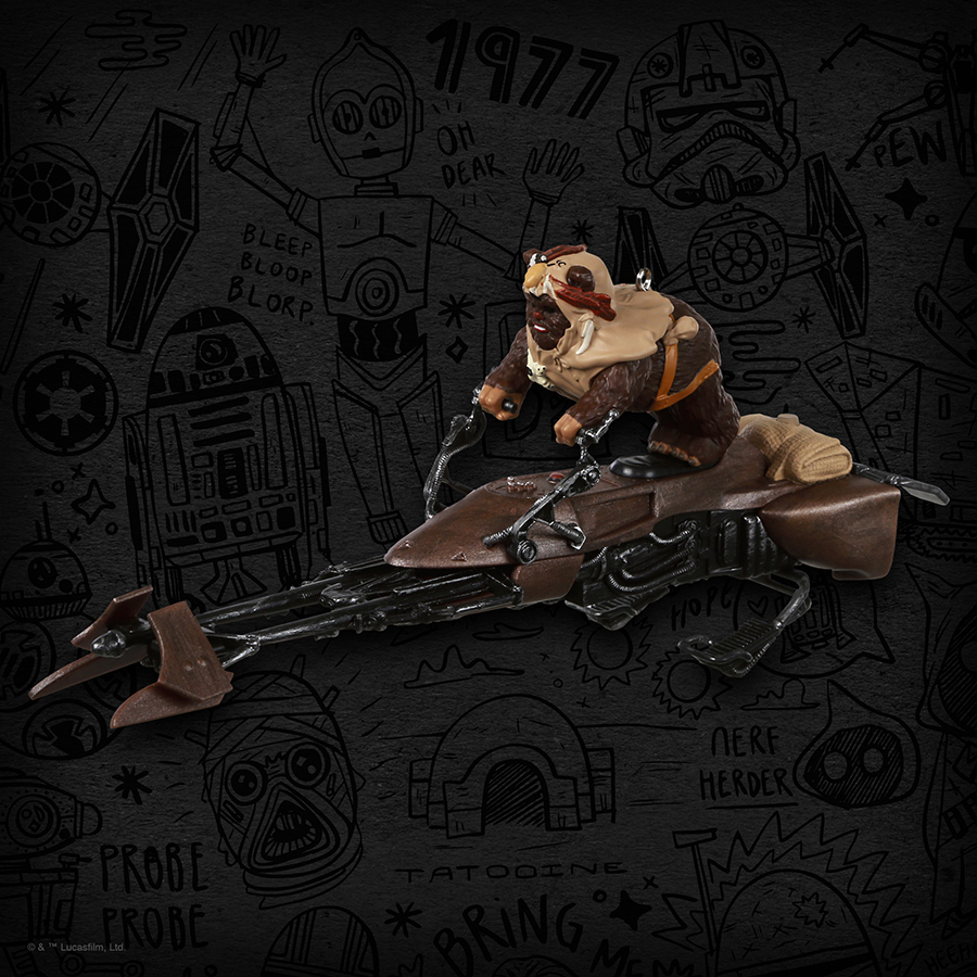 - A Wild Ride on Endor themed Keepsake Ornament features Paploo the Ewok piloting a speeder bike as seen in Star Wars: Return of the Jedi.