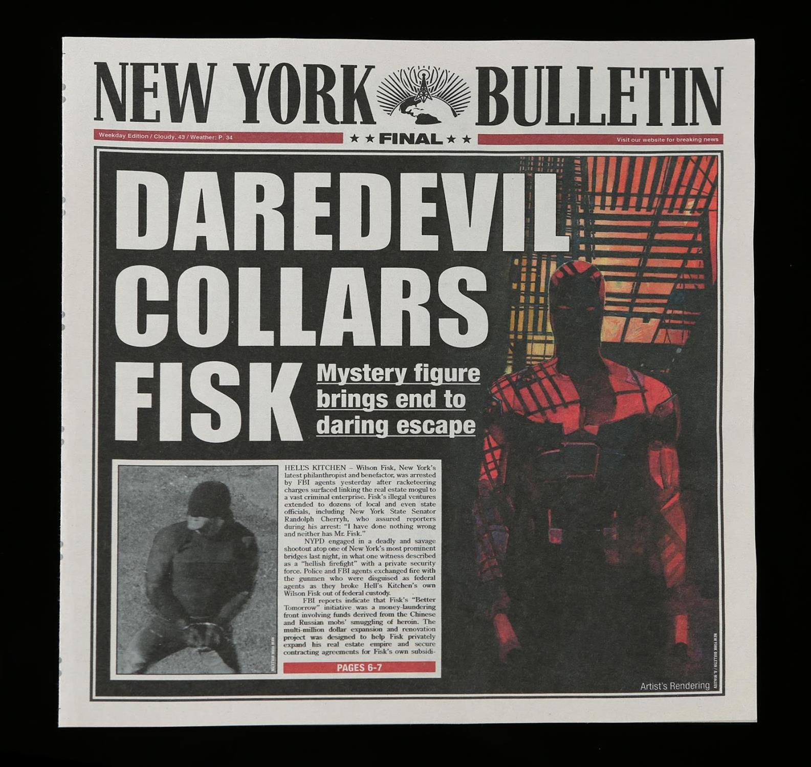 - ‘Daredevil Collars Fisk’ New York Bulletin Newspaper Cover from Marvel's Daredevil Est. $300 - 500