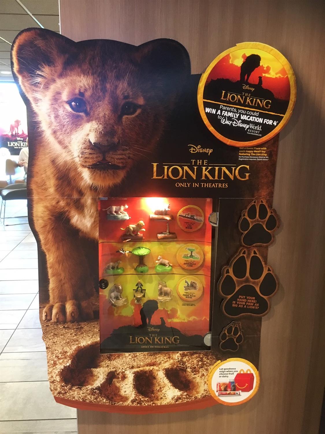 - In addition to the toys, as part of McDonald’s Roar to Win Game, guests can enter to win a Family Vacation for 4 to the Walt Disney World Resort.