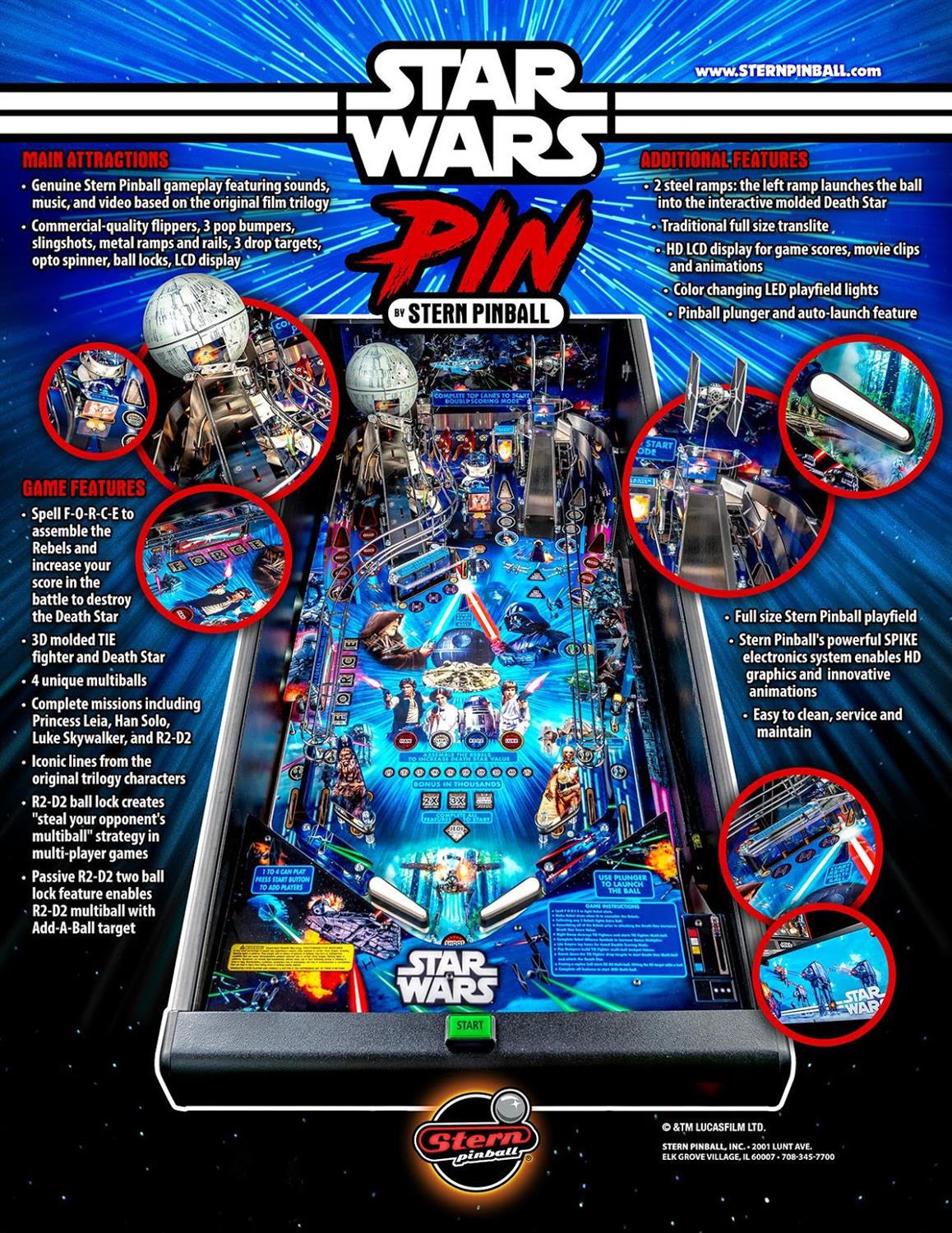 - The easy to setup Star Wars Pin is built to last and engineered with genuine Stern commercial-quality parts.