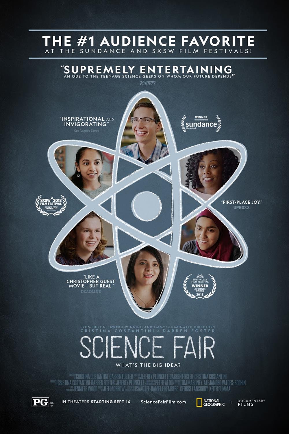 - “Hailed by critics as "immensely likeable," "brilliant and quirky" and an "ode to the teenage science geeks on who our future depends," and winner of the audience award at Sundance and SXSW, National Geographic Documentary Films' Science Fair follows nine high school students from around the globe as they navigate rivalries, setbacks and, of course, hormones, on their journey to compete at The International Science and Engineering Fair.