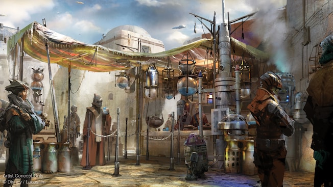 Visitors to Black Spire Outpost peruse fare from across the galaxy at Docking Bay 7 Food and Cargo