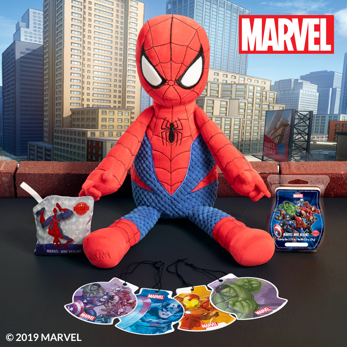 The Marvel Universe thwips into Scentsy with the debut of a new fragrance called “Marvel Nine Realms.” The scent is described as being a mix of lime zest with blue tea. The scent will be available as a Scentsy Bar (exclusively available in a Scentsy Buddy Bundle or through Scentsy Club subscriptions), a Scent Pak, and as themed Scent Circles for your car with four character designs. A Spider-Man Scentsy Buddy is the centerpiece of the collection.