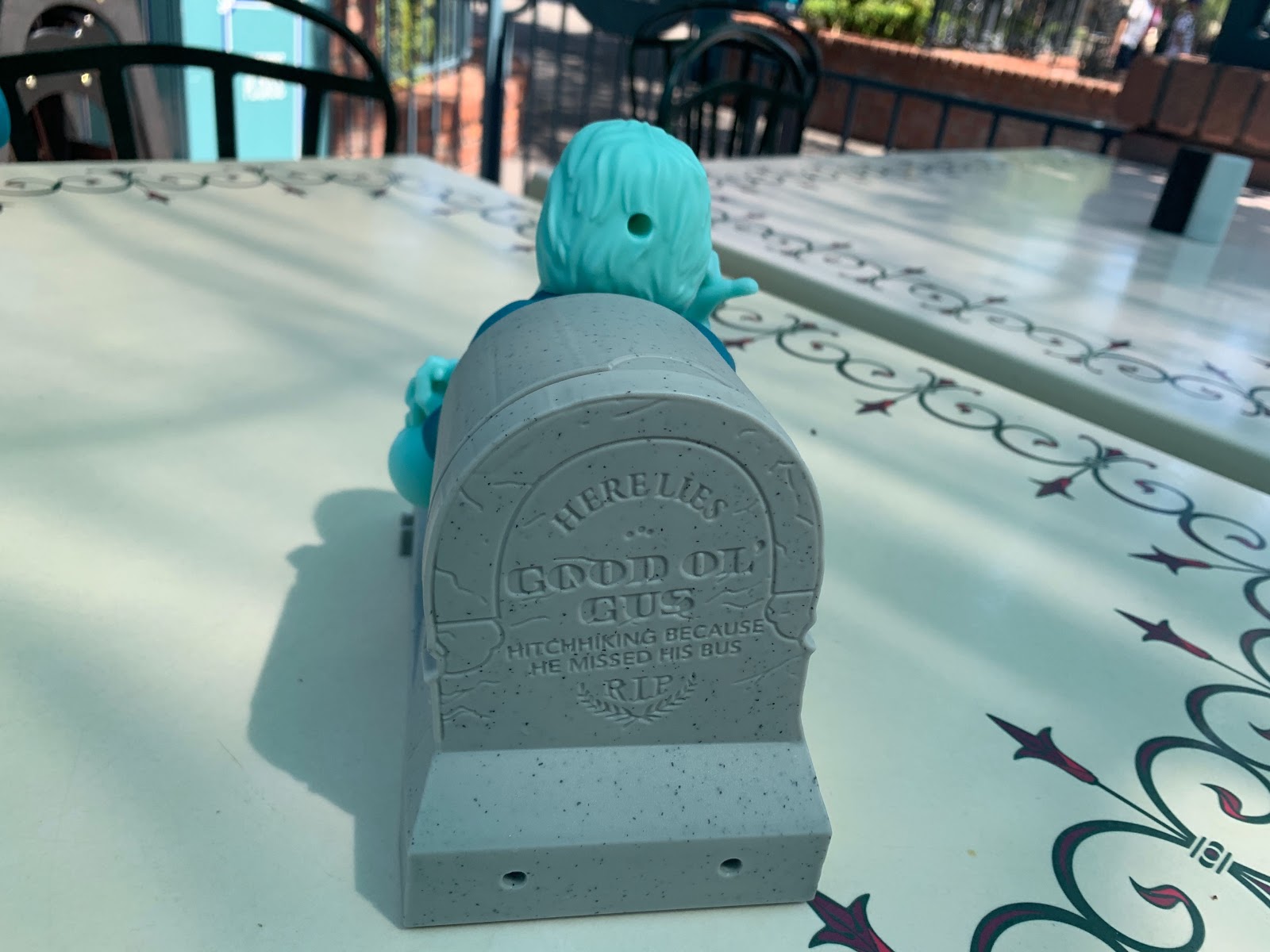 - This haunting souvenir also plays “Grim, Grinning Ghosts” to complete the Haunted Mansion experience.