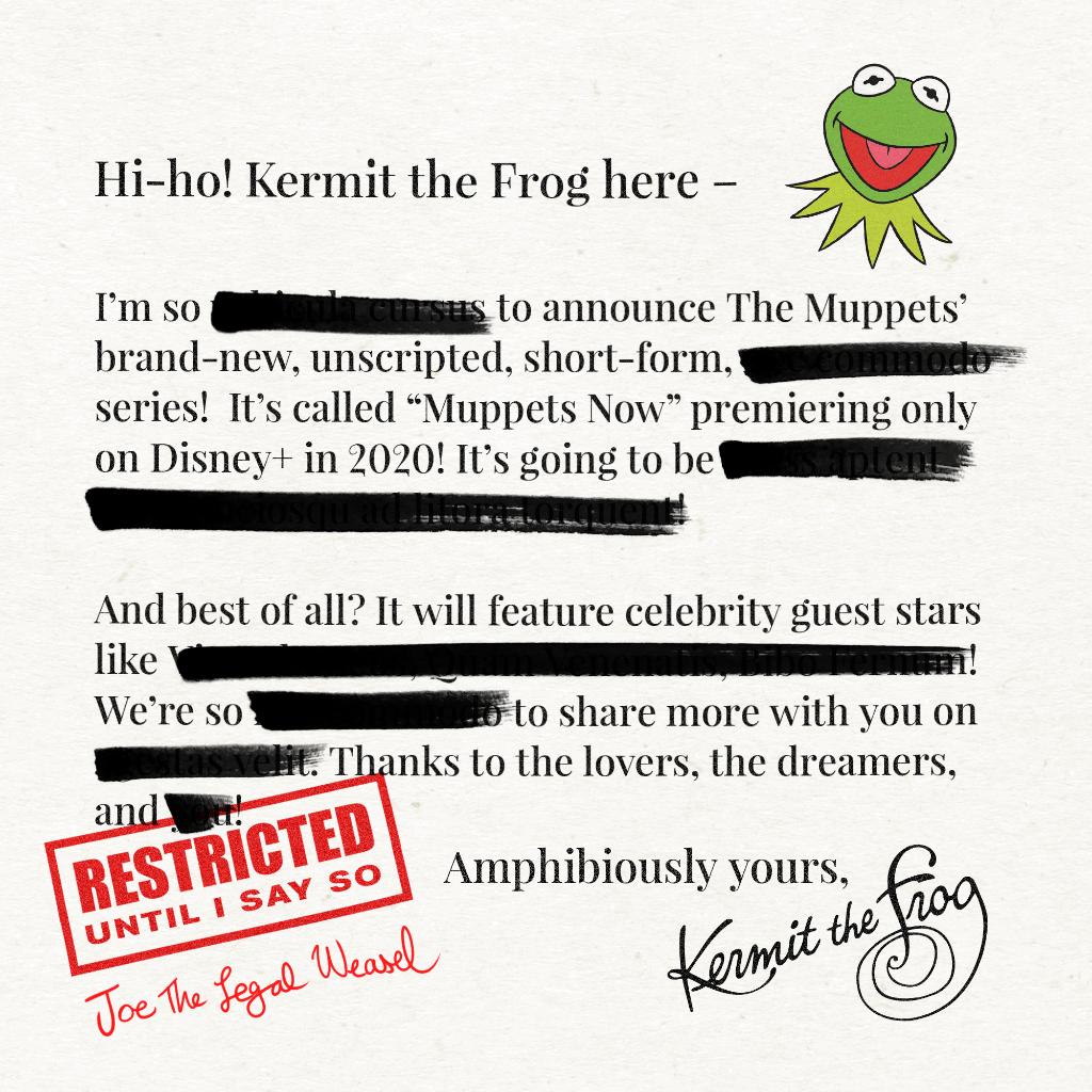 - Muppets Now was also announced to be coming to Disney+ in 2020. This new short-form series will be totally unscripted.