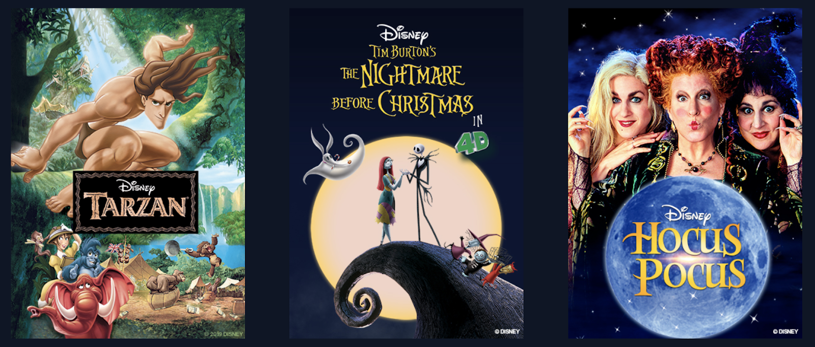 Showtimes daily for The Nightmare Before Christmas and Hocus Pocus are: