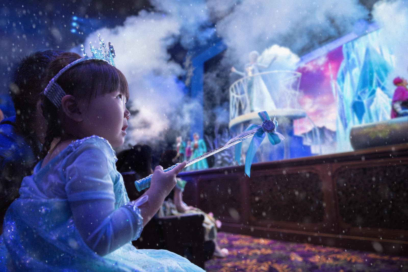 - Act two – A sing-song surprise: After mastering your magical moves, you leave the comfort of the barns, battling the whooshing wind until you enter the spectacularly sparkly Ice Palace on the peak of North Mountain. Now’s the time to surprise Elsa, celebrating her power and the magic that can be found in all of us, before joining in with joyful renditions of “Let It Go” and “Love Is an Open Door.” Then, warm up with a warm hug from Olaf.