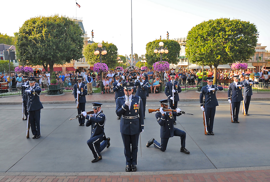 The Walt Disney Company has a long tradition of working with our military personnel and everyday at Disney Parks nationwide, Active military and veterans are welcomed and honored in ceremonies (like the daily Flag Retreat in Town Square on Main Street U.S.A.) and today new military offers on admission and hotel stays were announced for visits through 2020.