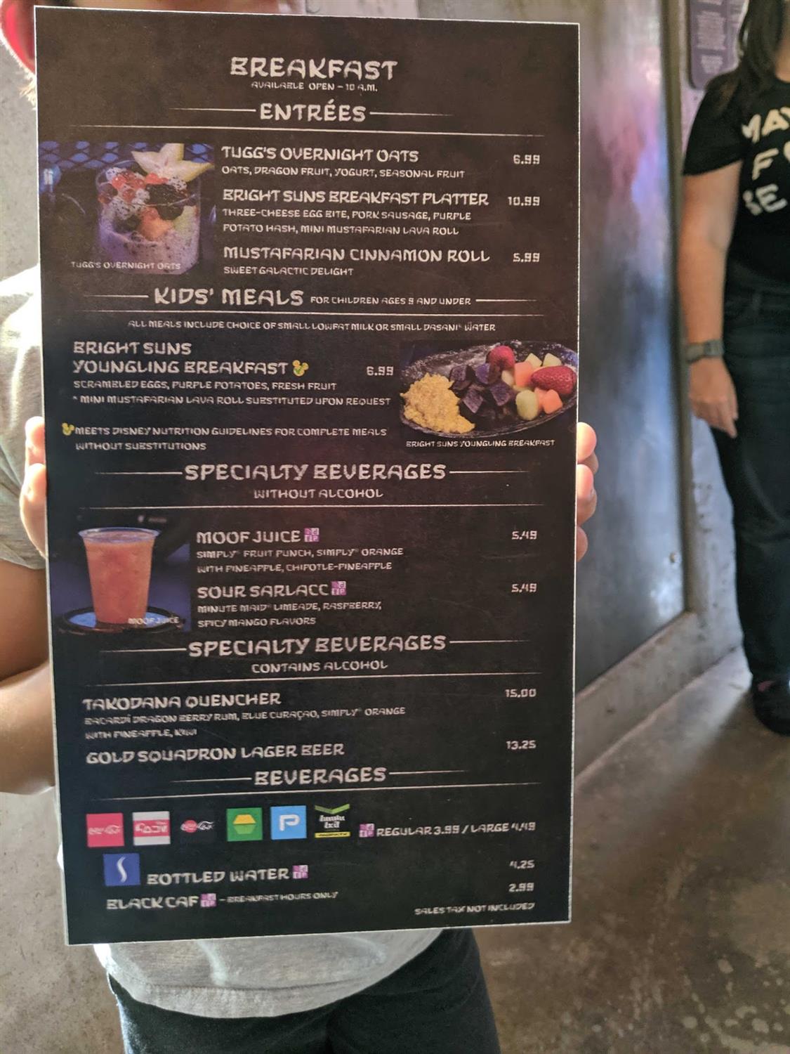 - It’s also worth noting that the restaurant has not made any changes to the breakfast menu, so guests can still order the “Bright Suns Breakfast Platter” or the “Mustafarian Cinnamon Roll.”