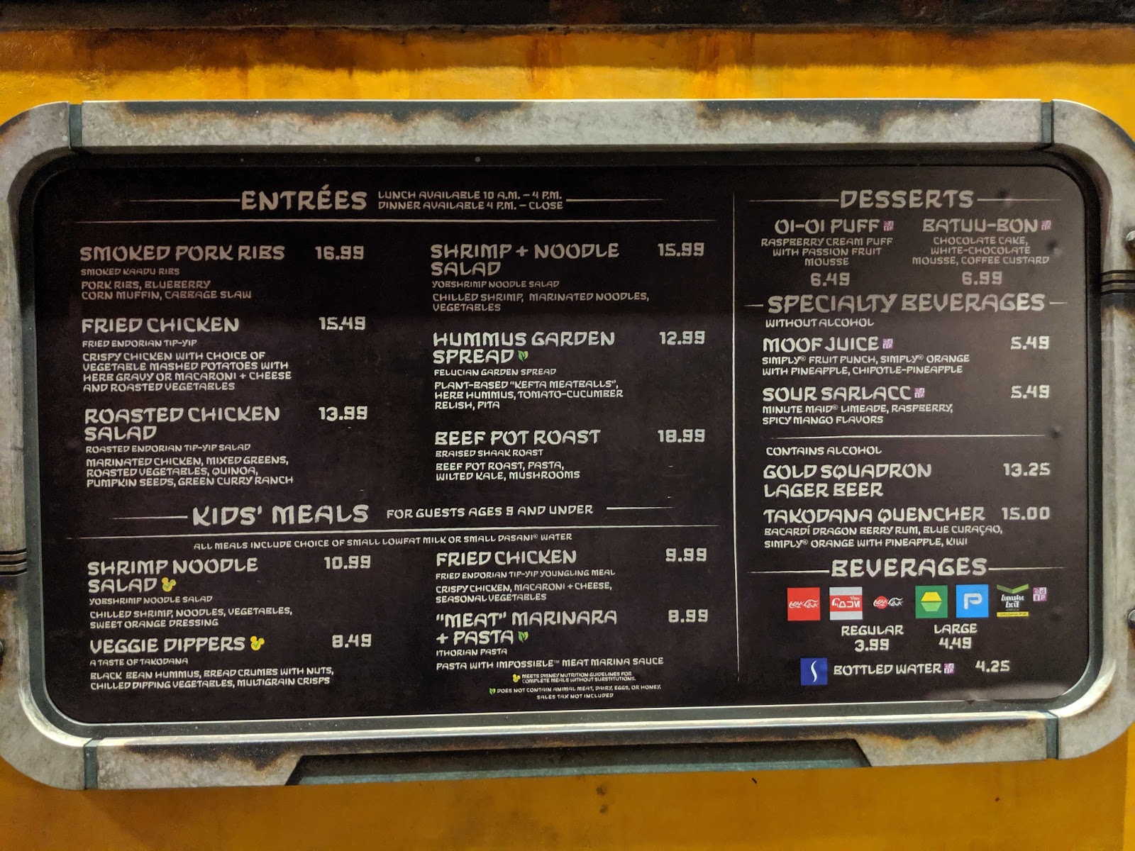 Docking Bay 7 menu at Disneyland