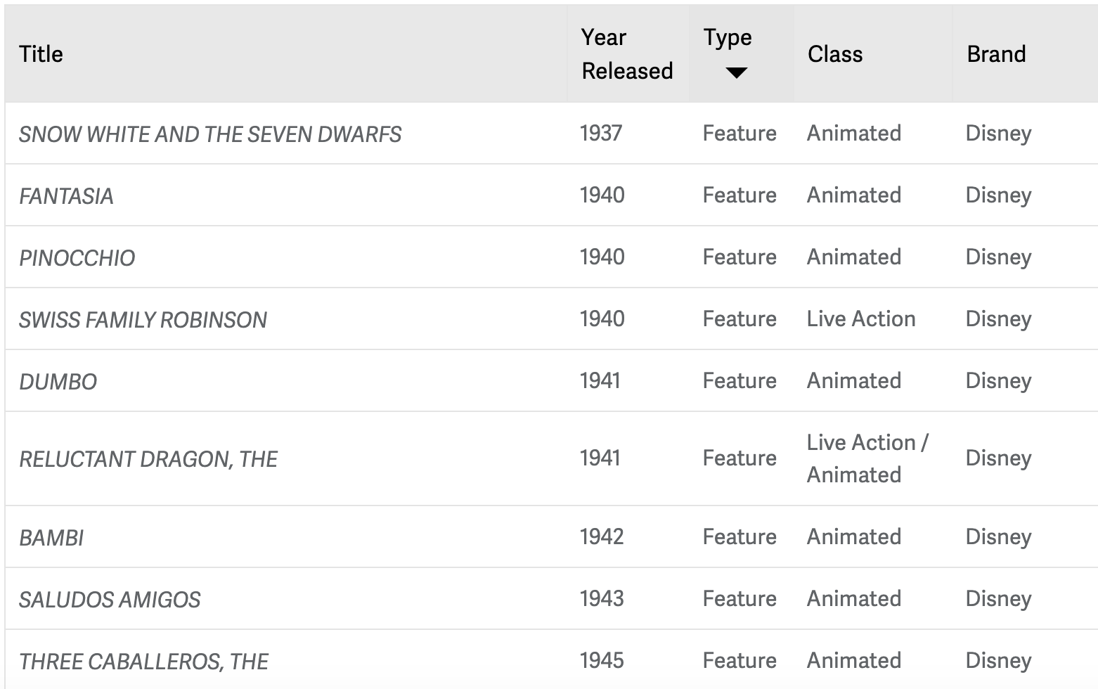 - Over on D23.com, you can now view “basically everything” coming to Disney+ and sort the list by: