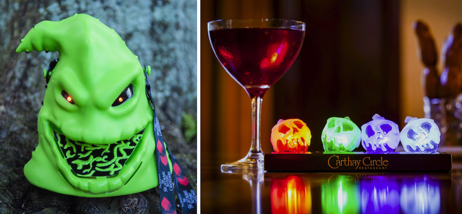 - If you’ve been to Disneyland park or Disney California Adventure park, you may have noticed that there is a spooky array of themed novelty popcorn buckets, sippers, glow cubes, and more for the Halloween season. Halloween is just days away, so guests will definitely want to stop by and grab these before they’re gone forever! At Disney California Adventure park, guests can find the Oogie Boogie premium popcorn bucket at various carts throughout the park, and at Carthay Circle Restaurant and Lounge, they can sip on a Poison Apple-tini that features a beautiful smoky quartz poison apple glow cube. Guests who want to complete their collection of poison apple glow cubes can also purchase a three-pack of cubes that includes red, green, and purple poison apple glow cubes.