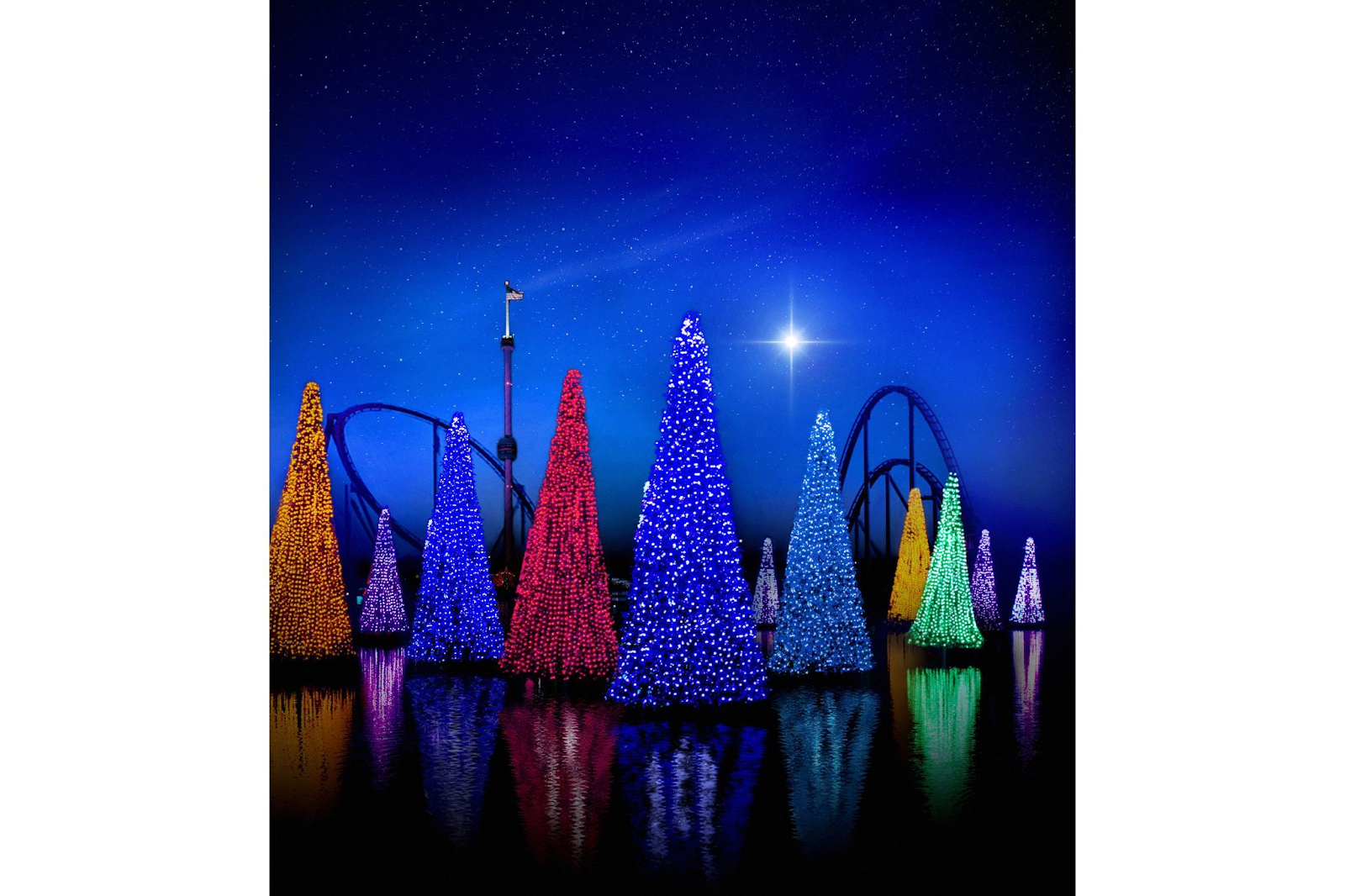 - Take a stroll through a wintery, watery wonderland immersed in a sea of twinkling holiday trees that sparkle to music as they light up the water. Dazzling images come to life on over 100 trees, including a giant glistening centerpiece that towers 70 feet above the water. Walk along the water’s edge for some holiday shopping at the Shoppes at Waterfront as a magical flurry of snow falls over SeaWorld Orlando while holiday sounds and smells fill the air.