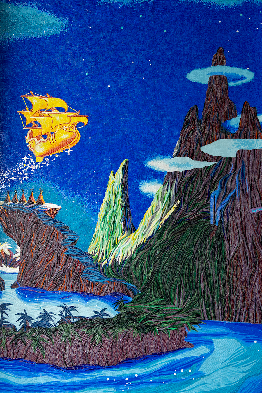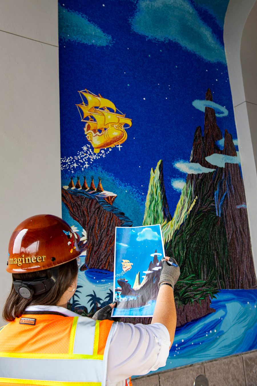 - In addition to the Peter Pan mural, Imagineers designed another mosaic inspired by a Disney animated classic, Tangled.