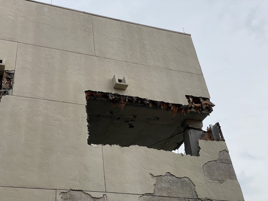 - As these pictures show, major sections of the structure have been torn open as the building undergoes its remodel.