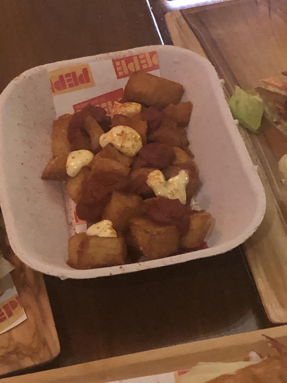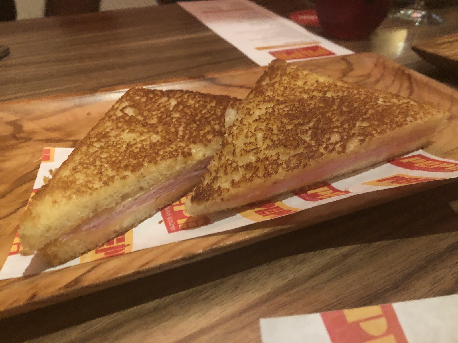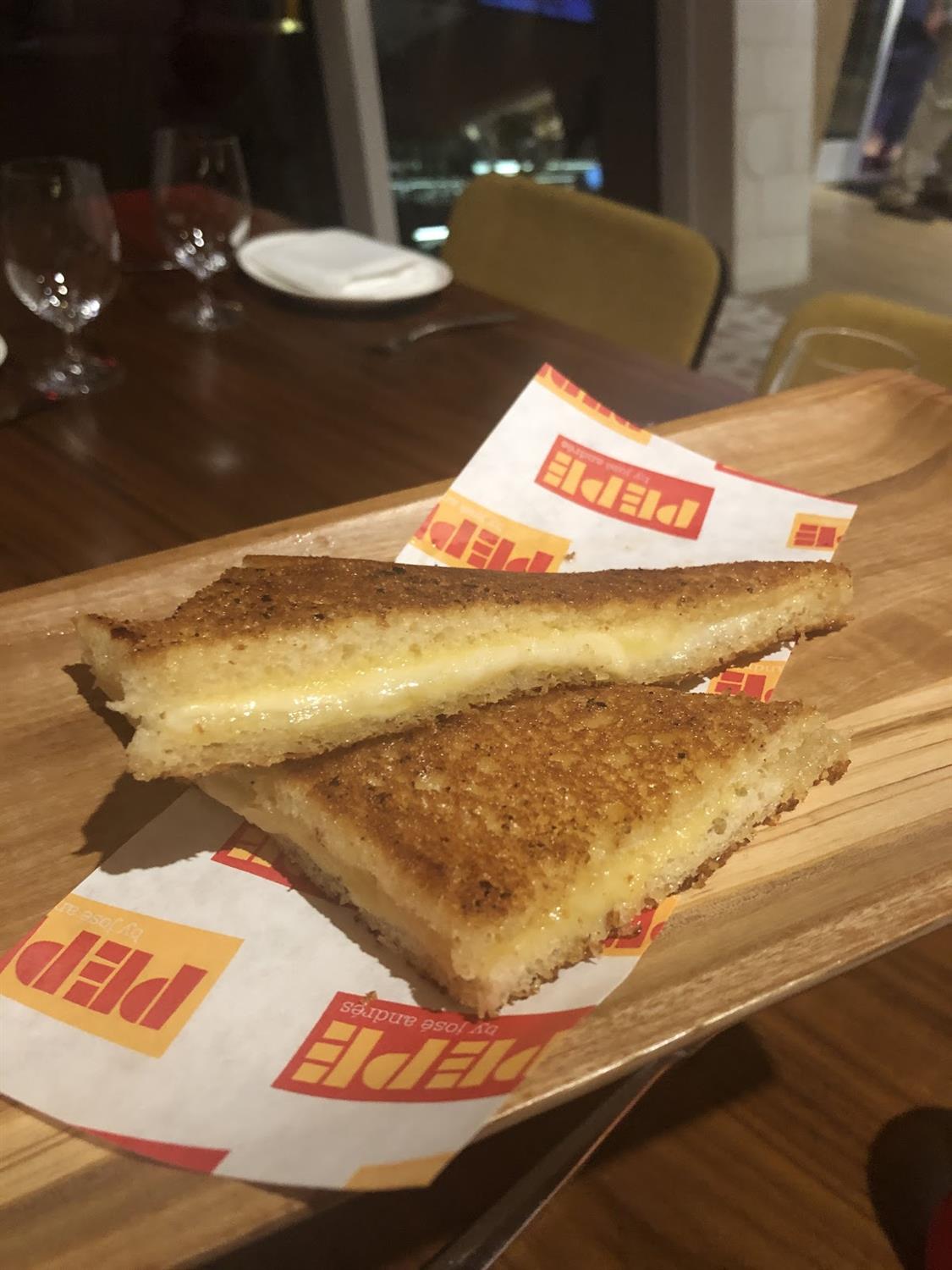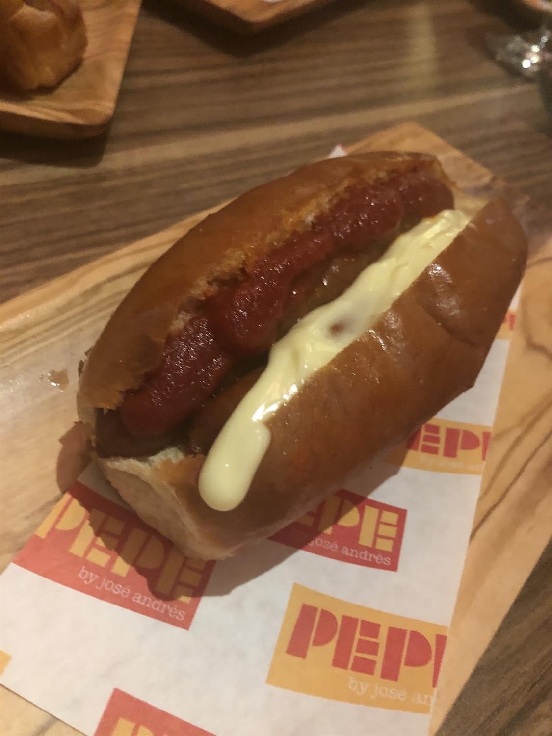 The menu for Pepe includes hot sandwiches, like the popular Pollo Frito, a fried chicken sandwich with peppers, with the chicken so tender, it doesn’t just figuratively melt in your mouth, it literally does too. Personally, I loved the B.E.L.T. (Bacon, Egg, Lettuce, and Tomato Fresco on Ciabatta bread, but the biggest surprise, by far, was the Frankfurt. Simply stated on the menu: “An All Beef Hot Dog,” I actually audibly ridiculed and made jokes that this was even on the menu considering the other dishes, but boy was I wrong. Thinking (in true Disney Parks fashion) that this was a frozen beef frank thrown down on a generic bun, I was completely flabbergasted when I took a bite and found myself finishing the whole thing. The bun itself comes from bread shipped in daily from Spain, with the frank itself being made fresh in house. It was savory and it was delicious and was so full of flavor it didn’t need any condiments. In fact, I’d dare say condiments on this hot dog would be insulting. While on the topic of the simple things that were astounding, the Bikini de Jamon y Queso/Bikini Quatro Quesos could have easily been the favorite of the table. Grilled cheese sandwiches, one with ham, that are pressed with a hint of honey mustard could easily win anyone over, and can easily be a late snack for anyone having fun into the night at Disney Springs.