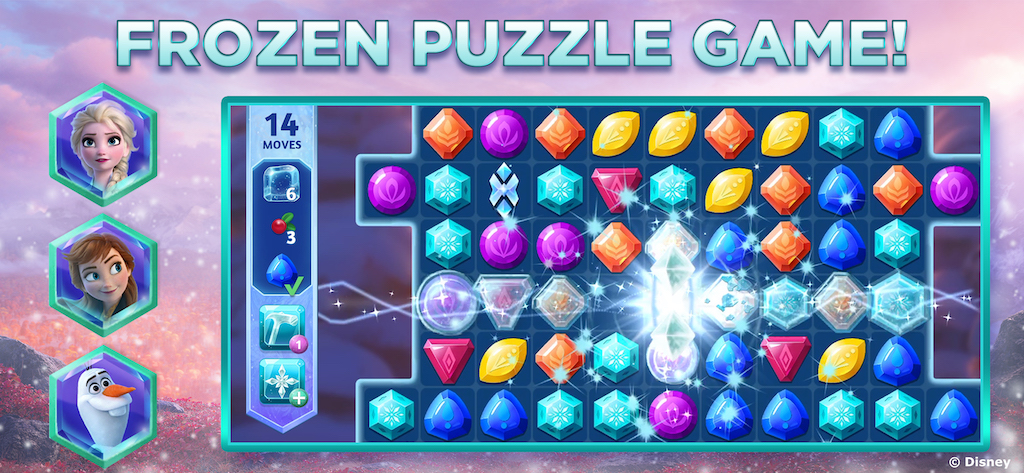 - Best in class match-three mechanics and puzzles with a Frozen-themed twist
