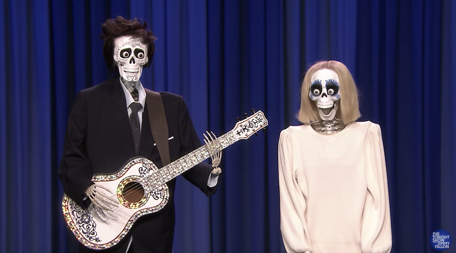 Along with singing, the two celebrities used a few props (we love the Coco skeletons) to add some fun visuals to the songs and help recreate our favorite scenes.