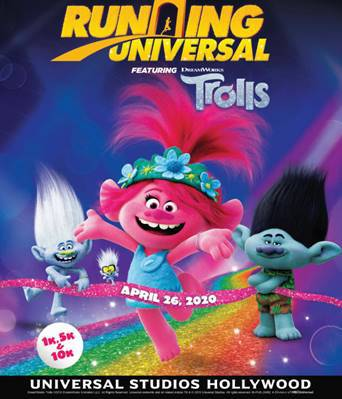 Universal Studios Hollywood kicks off its newest “Running Universal” race with a hair-raising tribute to DreamWorks Animation’s Trolls franchise on Sunday, April 26th, 2020 with a 5K, a Kids’ 1K and a 10K run.