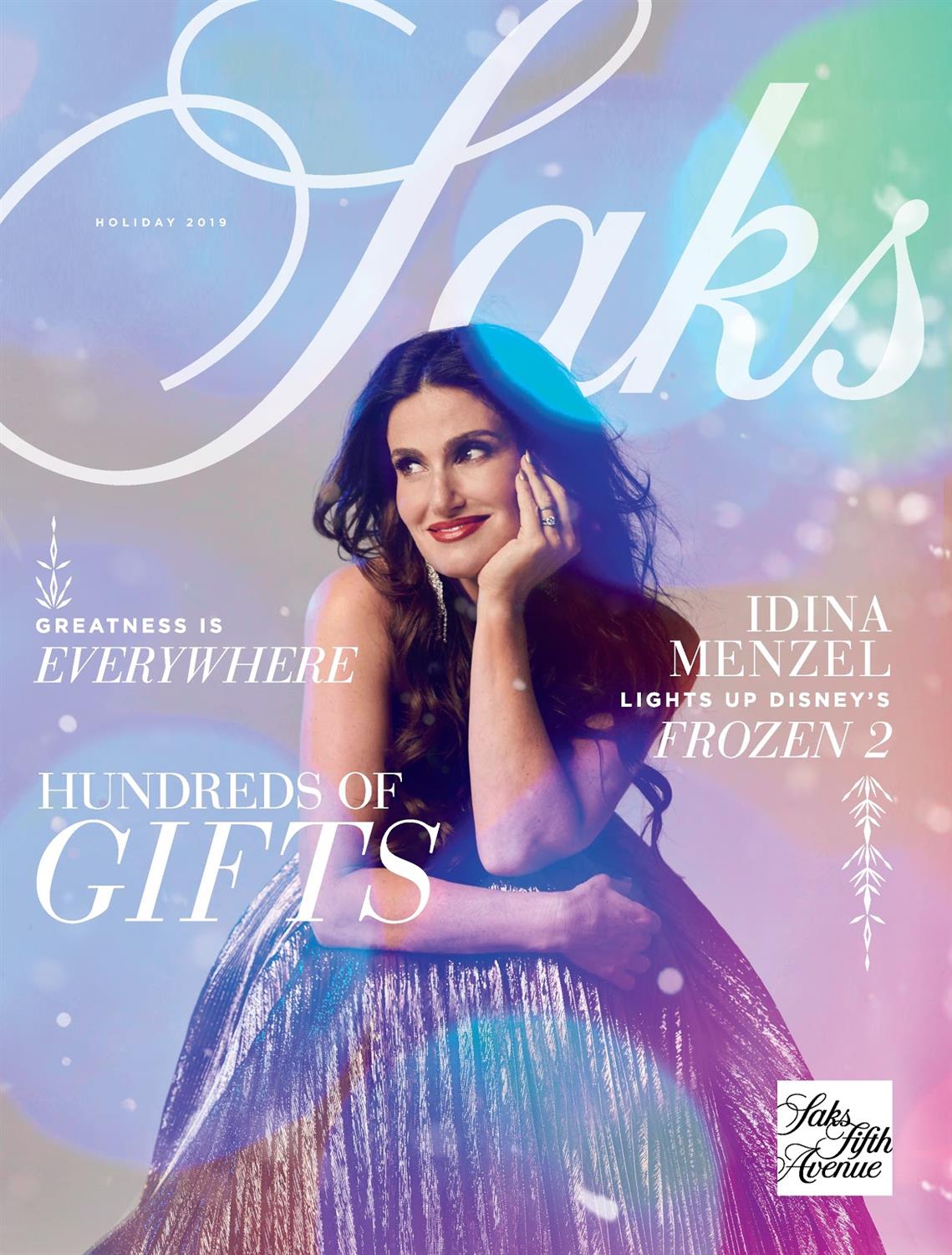 - The dazzling holiday windows were unveiled with a special musical performance by Idina Menzel, who is the voice of Elsa and also this year's Saks Holiday Book cover star.