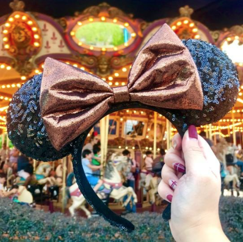 - Minnie Mouse Sequined Ear Headband with Belle Bronze Bow | shopDisney