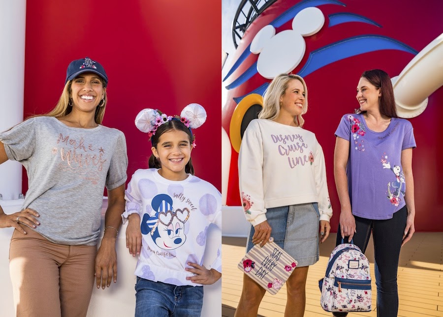 - For women, the rest of the collection includes comfy T-shirts, sweatshirts and hoodies with fanciful details, a baseball hat with rose gold accents and a Loungefly backpack with the Sail Away Minnie motif.
