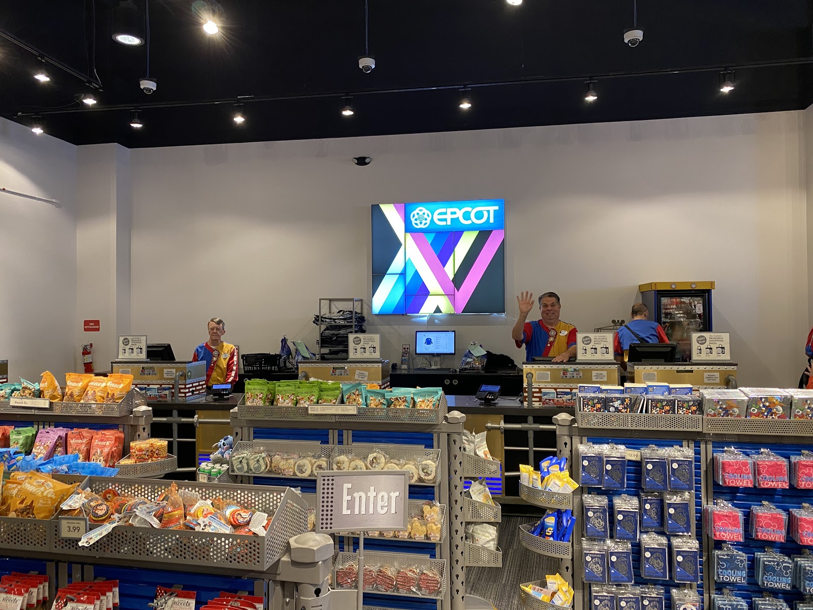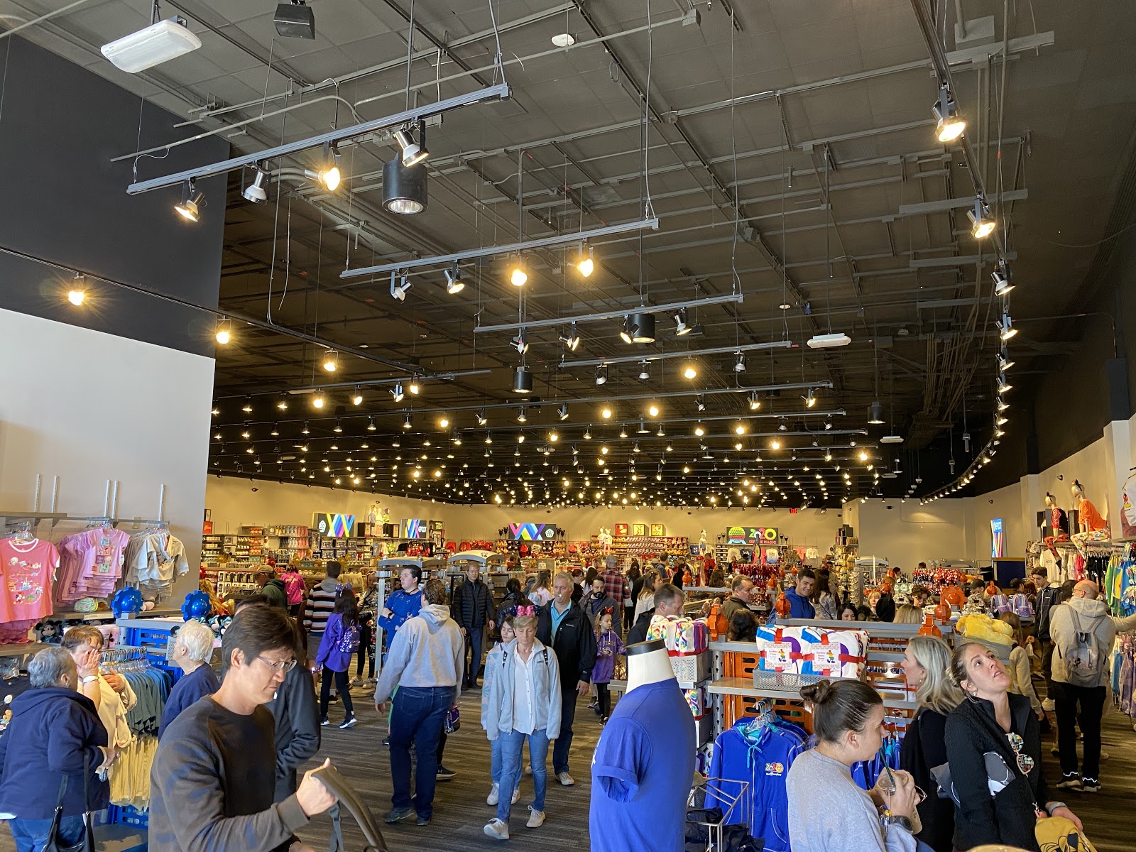 Lighted displays throughout the temporary store attempt to bring some of the Future World esthetic inside. The temporary white walls and overall cluttered feel is contrary to the recent standards that Disney theme park gift shops put in practice a few years ago where stores feel more open and less chaotic. It will be interesting to see how this version of Mouse Gear changes as construction proceeds to transform Future World into something new.