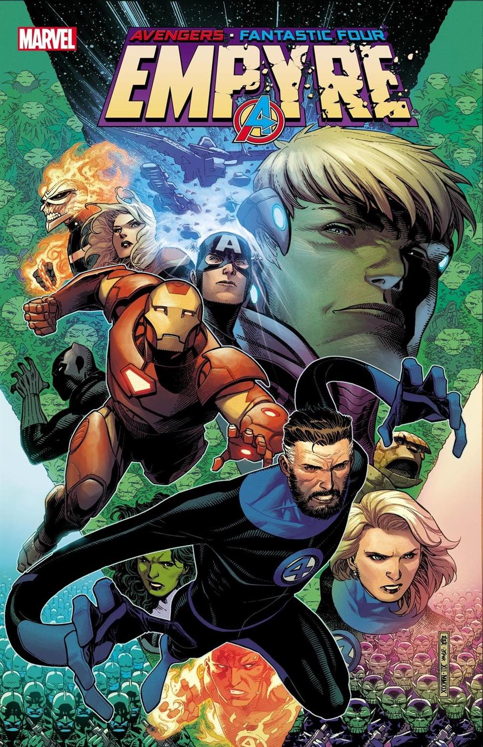 - “Empyre #1” by Al Ewing, Dan Slott, and Valerio Schiti arrives in April in comic shops, on the Marvel Comics App, and on Marvel.com.
