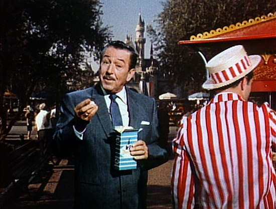 On April 15th, 1962 viewers of Walt Disney’s Wonderful World of Color were treated to a special episode showcasing nighttime entertainment, including special performances by Louis Armstrong and the Osmond Brothers among several others. More notable, are the introductions that show Walt Disney himself interacting with park guests. It’s in one of these moments that we see Walt with a popcorn vendor before being swarmed by fans where he signs a nice lady’s hat only to have her steal his popcorn! And then, moments later, Walt (missing his own popcorn) just takes it from another guest’s popcorn box! Well, it’s 2020 now, and that popcorn box has finally resurfaced.