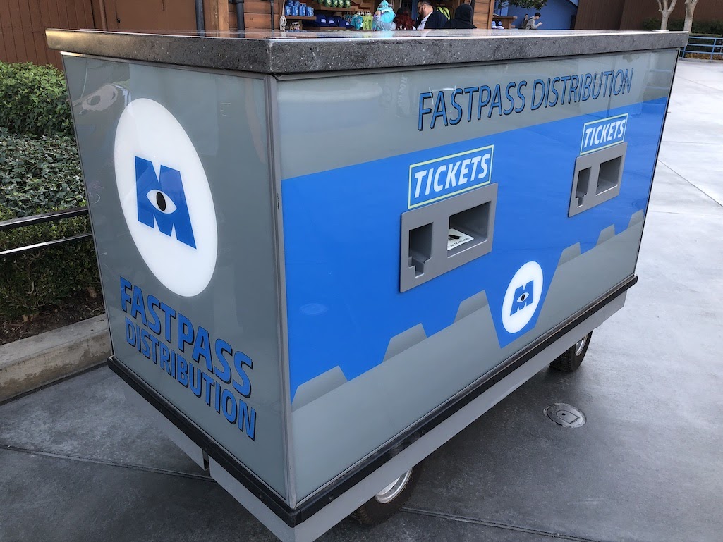 - Over in Disney California Adventure, guests will find the Monsters Inc. FastPass distribution is located just outside of the attraction. It may be a little less glamorous than its Disneyland counterpart, but it’s still easy to use and access.