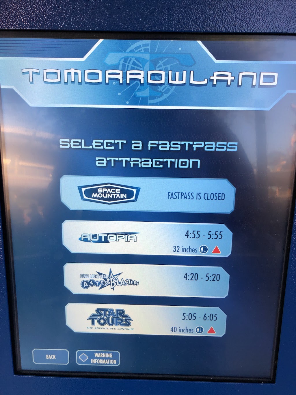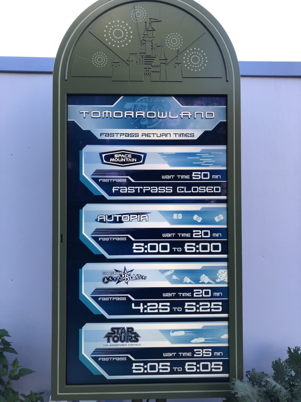 - Disneyland also features a digital display board for the Tomorrowland attractions where guests can check for FastPass return times.