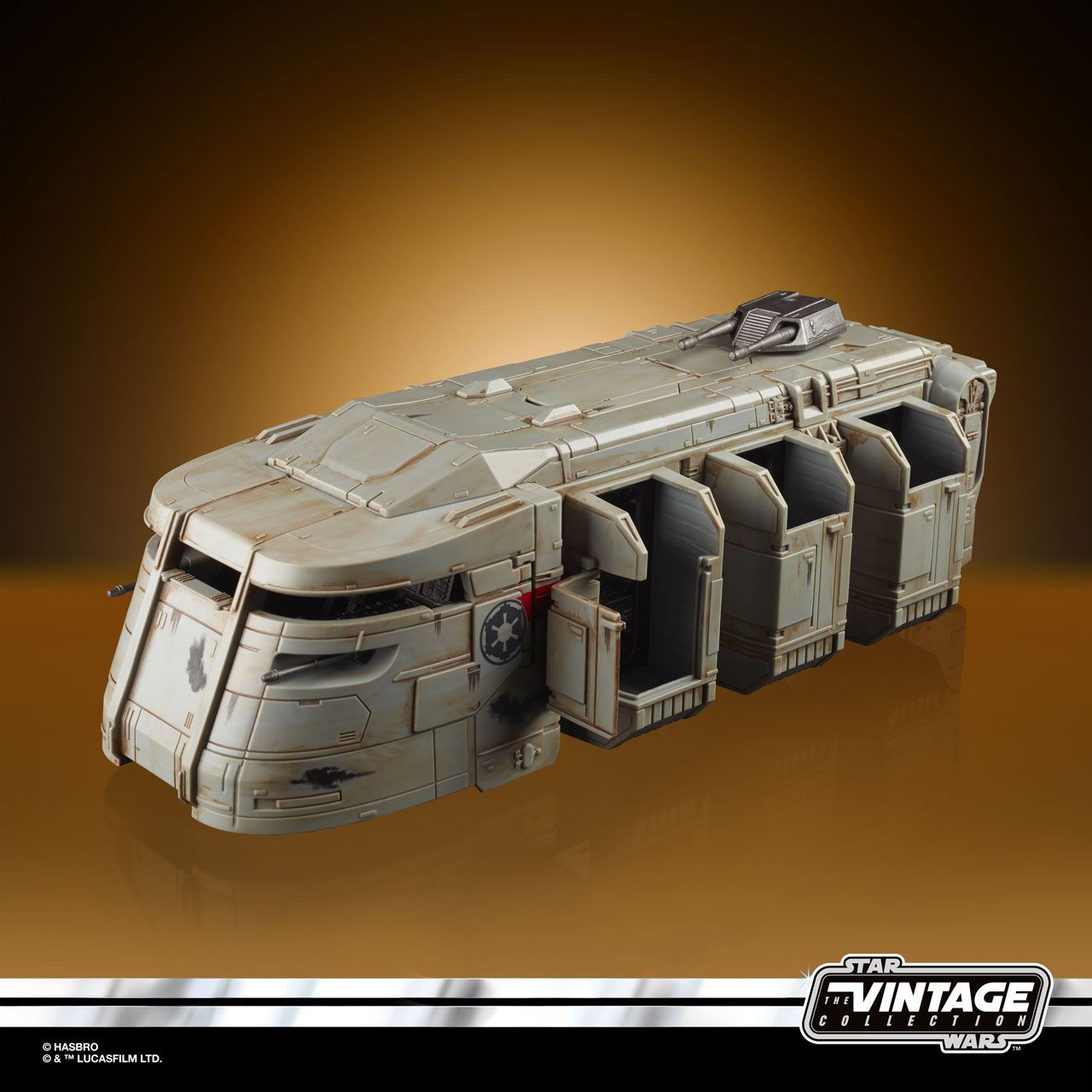 All things come full circle in this Star Wars: The Vintage Collection release from Hasbro. The Imperial Troop Transport was an original Kenner playline product that never appeared in the original trilogy. It inspired Jon Favreau to use the vehicle in The Mandalorian, which is now becoming a toy again! Click here for more information.