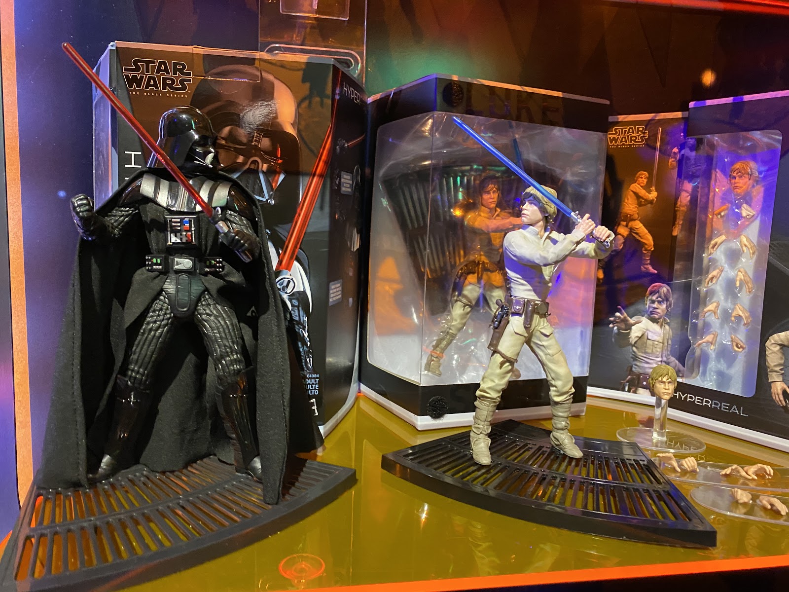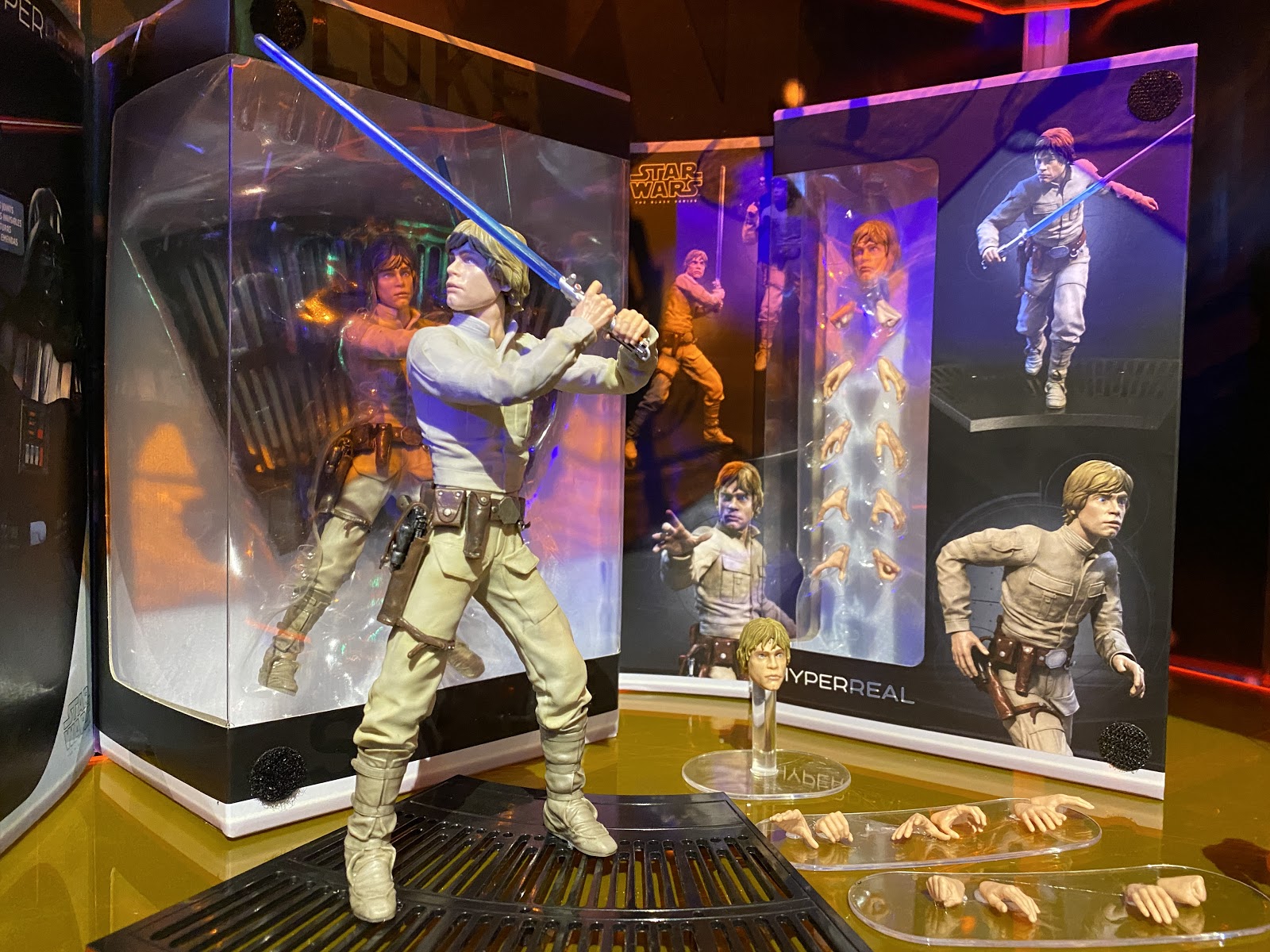 Continuing the HyperReal series from last year’s eight-inch Darth Vader figure is the Bespin Luke Skywalker with multiple hand variants, his blue lightsaber with removable blade, and his blaster with working holster.