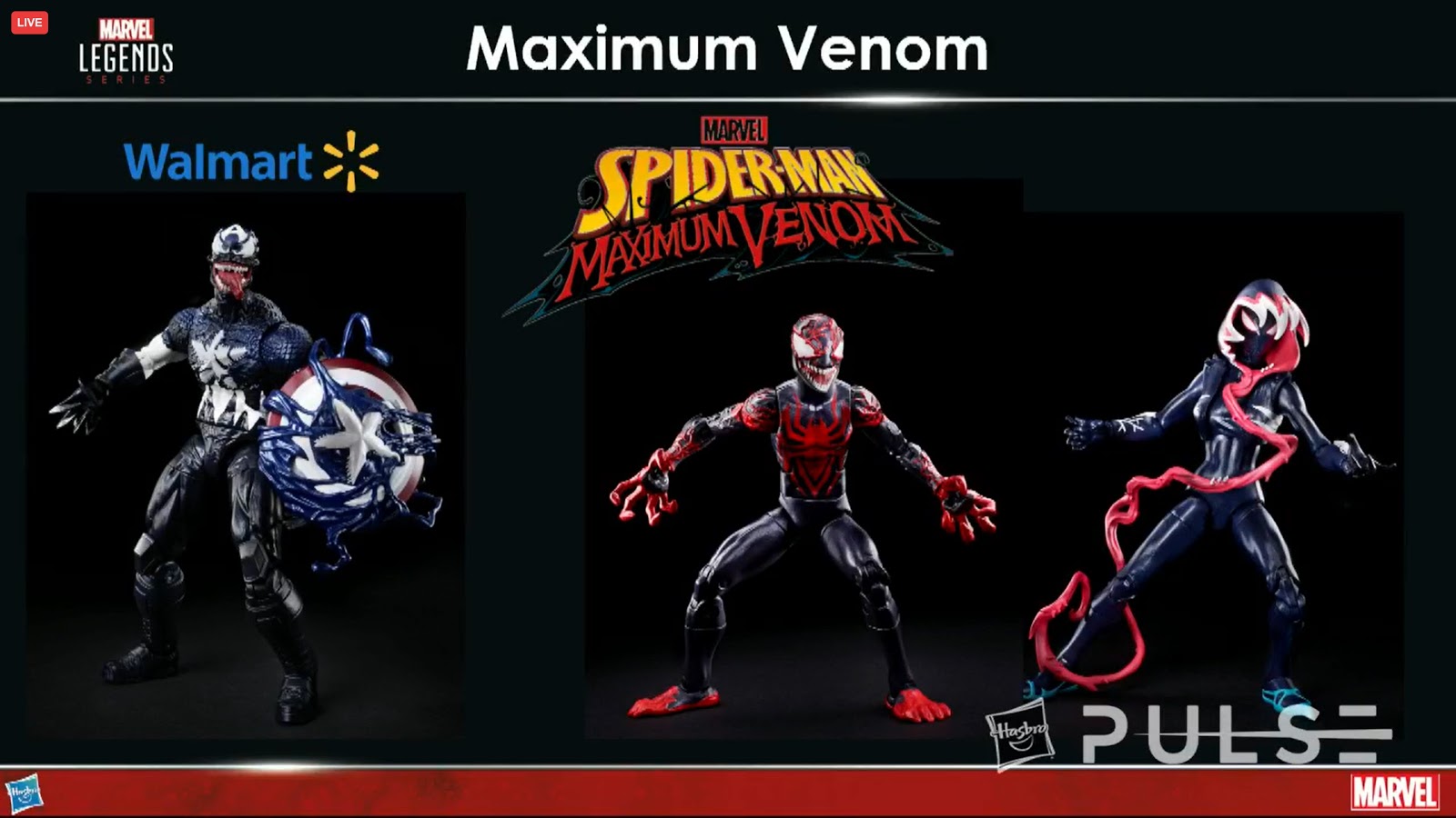 Themed to the upcoming Disney XD animated series Spider-Man: Maximum Venom, three Marvel characters have been “Venomized” in a wave that includes Captain America, Ghost Spider, and Miles Morales. Each figure coming this Fall, with Captain America as a WalMart Exclusive.