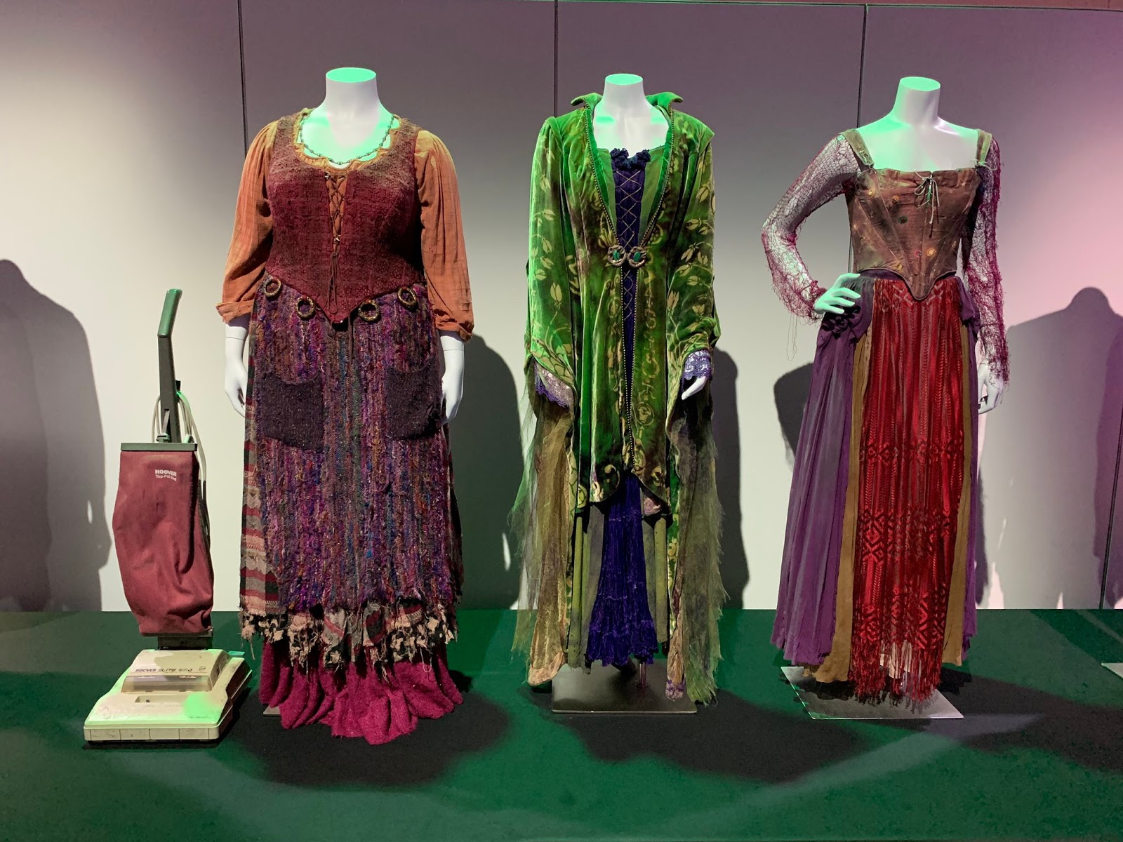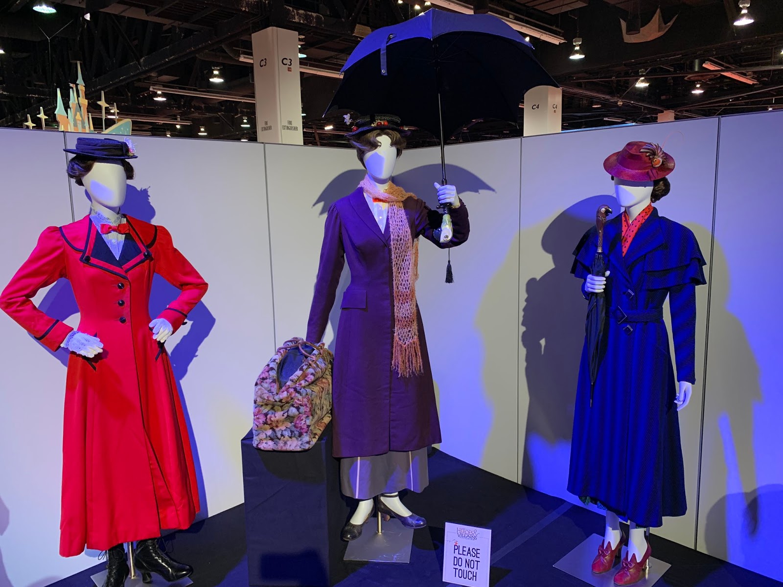 - Among the costumes included in the “Disney Heroes” section are Belle’s village dress and ballgown from 2017’s Beauty and the Beast; Giselle and Prince Edward’s costumes from Enchanted; and two iconic Mary Poppins “traveling dresses”: one from the 1964 original film and the other from 2019’s Mary Poppins Returns. “Disney Villains” ensembles include the trio of wonderfully wicked witches from 1993’s Hocus Pocus, the duo of dresses worn by the stepsisters in 2015’s Cinderella, and the dress worn by the incomparable Bette Davis in 1978’s Return from Witch Mountain. And “Spaces Between” includes Maleficent’s gown from the 2014 film, as well as the Evil Queen and Hook’s costumes from Once Upon a Time.