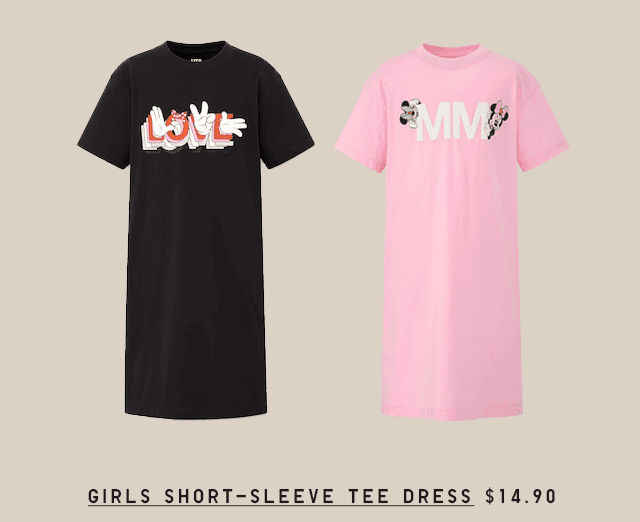 - For girls, this new collection offers three different short-sleeve T dresses (seen in the images below).