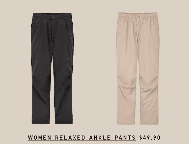 - The new collection’s relaxed ankle pants come in two different colors and sell for $49.90.