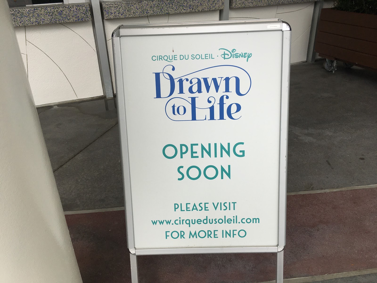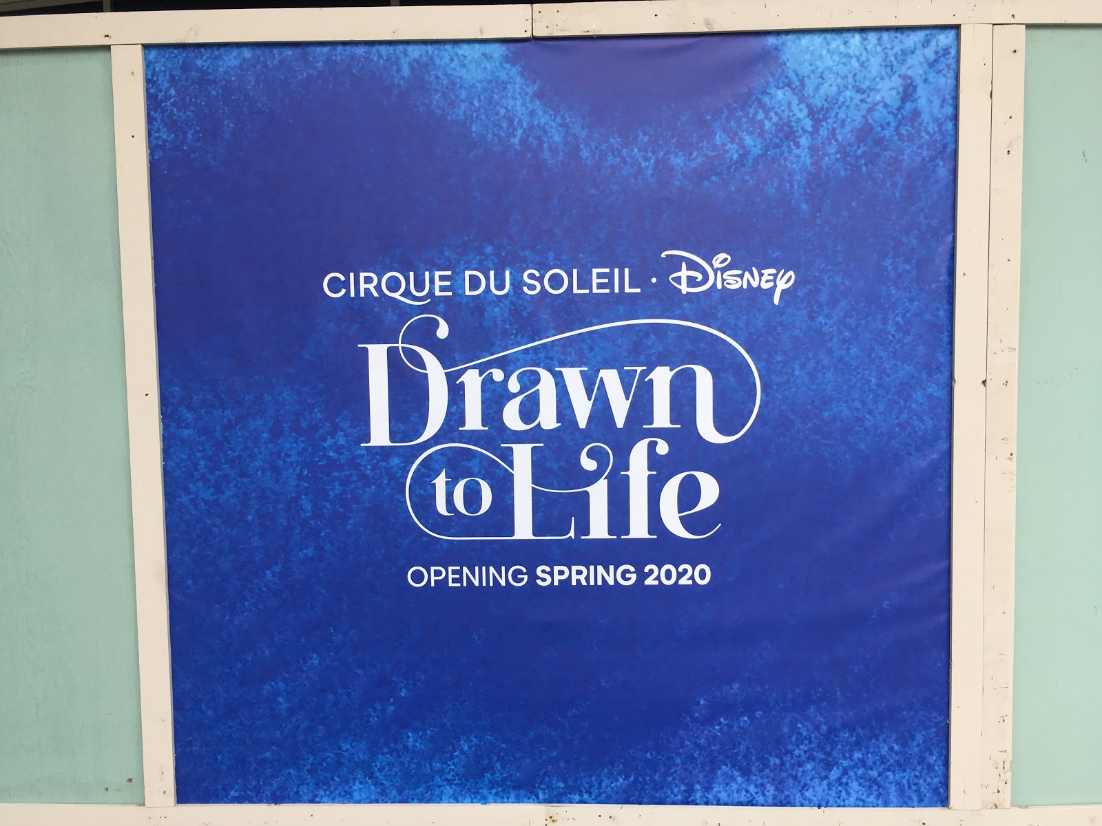 We are just over a month away from the world premiere of the new Cirque du Soleil show Drawn to Life at Disney Springs. Some new signage has been installed at the Cirque du Soleil theater, including the cirque logo and some temporary signs for Drawn to Life.