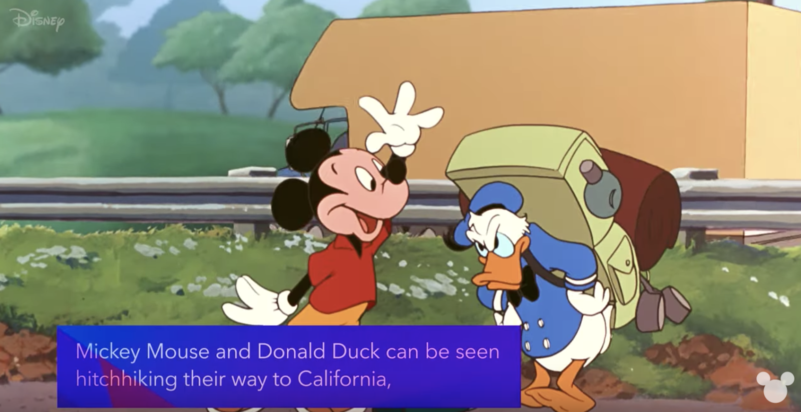 - Did you know, Mickey and Donald make a cameo in the movie? They can be seen hitchhiking their way to California!