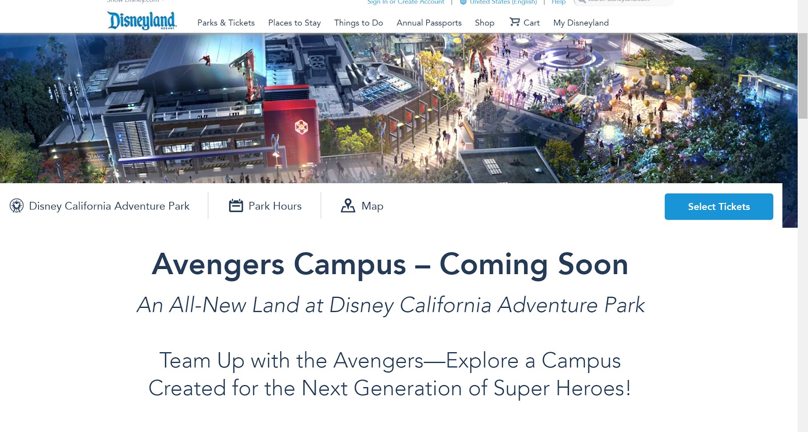 - No new date has been given regarding the grand opening of Avengers Campus other than “Coming Soon.”