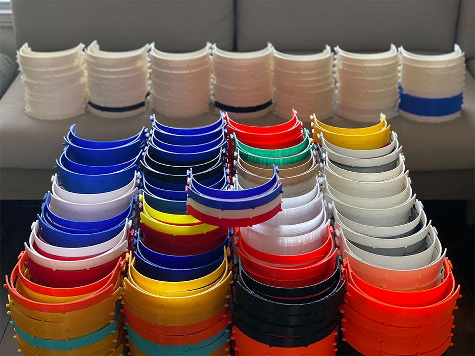 - Since then, team members have created and donated over 1,300 face-shield bands.