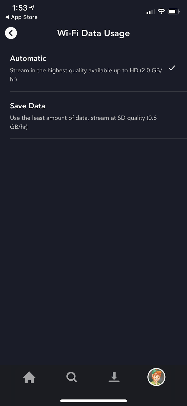 The latest update of the Disney+ mobile app allows users to restrict the amount of data used over wi-fi if needed.