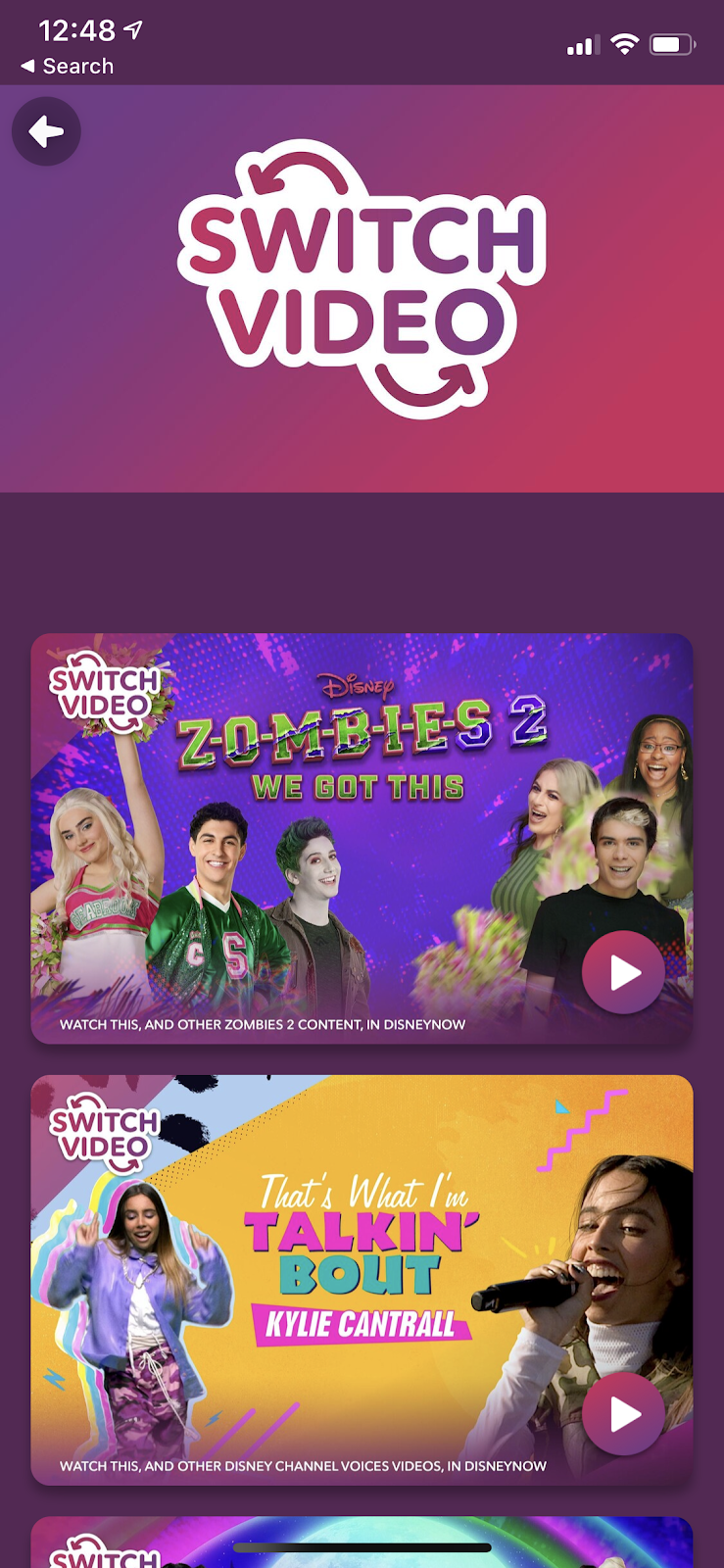 - To experience “Switch Video,” update your Disney Now app to the latest version.