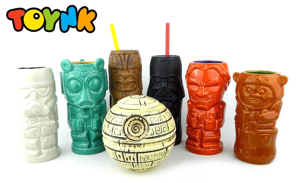 - Toynk: “This galactic-sized 40-ounce Jabba the Hutt Geeki Tiki includes a bonus mini muglet of his right-hand man, Bib Fortuna! Bib Fortuna mini muglet holds 2.5 ounces of liquid.”