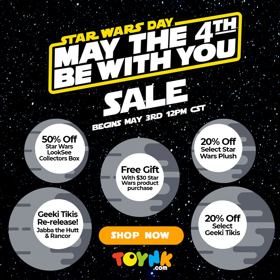 - Toynk.com is offering several deals for this year’s upcoming Star Wars Day on May the 4th.
