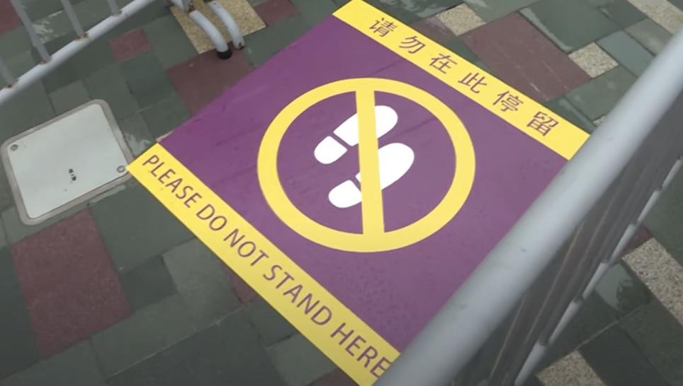 Any que area throughout the park is prepared with one-meter markers. For example, outdoor food carts have markings on the ground. High touch surfaces throughout the park will be regularly wiped down, such as trash cans. When Guests approach an attraction, Cast Members outside have signs in multiple languages and will remind Guests to keep one meter behind the party in front. Yellow tape lines are on guard rails and ropes to make the distance easy for Guests to see.