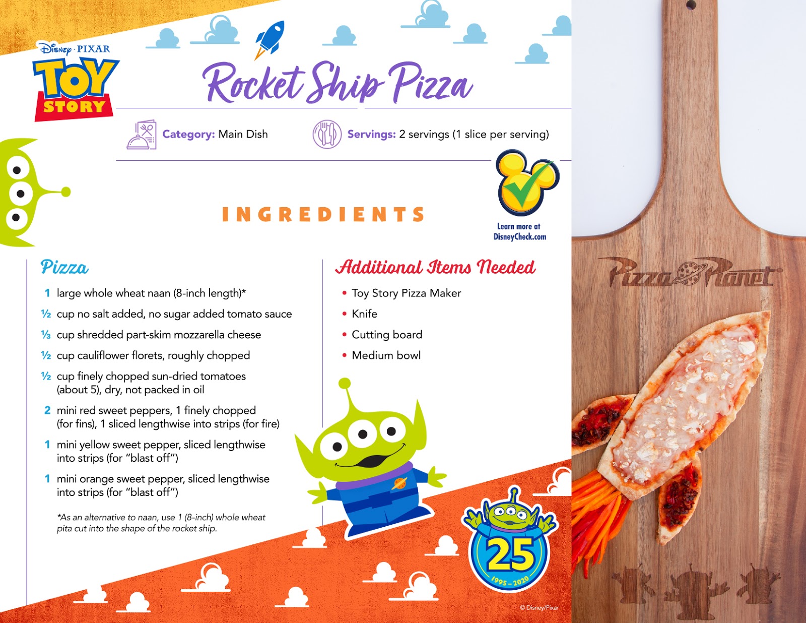 Next is the Rocket Ship Pizza, which uses a naan bread crust to create a pie that looks like a Pizza Planet rocket ship.