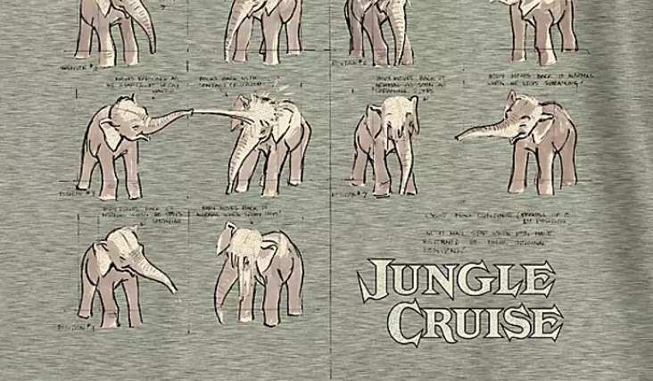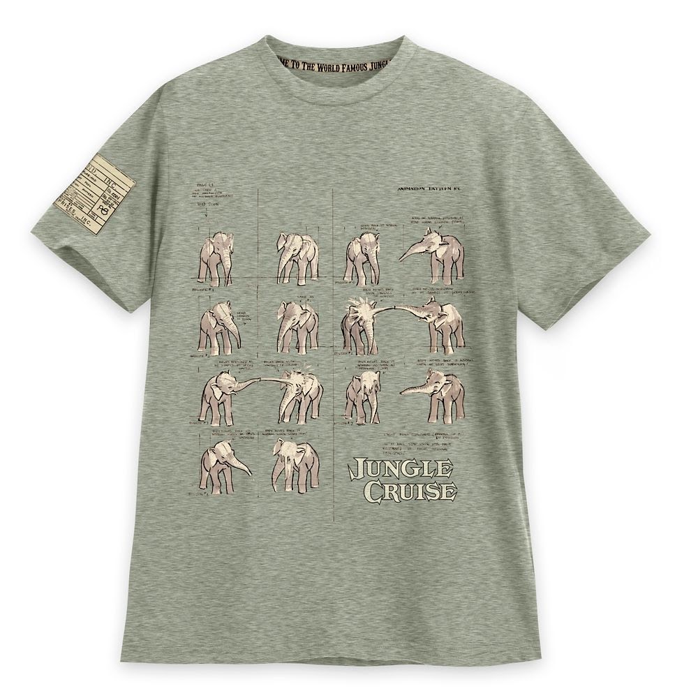 Celebrate the Imagineering of Disneyland's iconic Jungle Cruise attraction in this fine fashion tee. Featuring sketch art by Marc Davis created during the elephant pool animation design phase, it includes a sleeve label noting corresponding archival information. Heathered fabric and contrast stitching make this a stylish entry in our Disney Parks Backstage series.