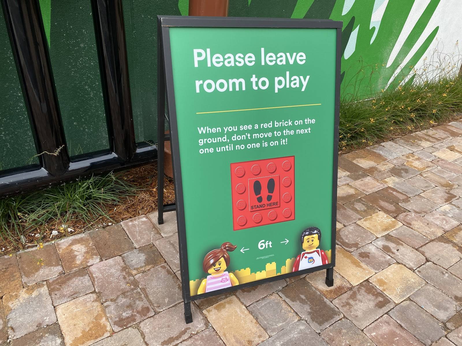 - LEGOLAND will provide complimentary masks to encourage all our guests, ages three and above, to do the same. Brick-themed spatial markers and kid-friendly, parkwide signage will help remind guests of social distancing recommendations and hygiene practices.
